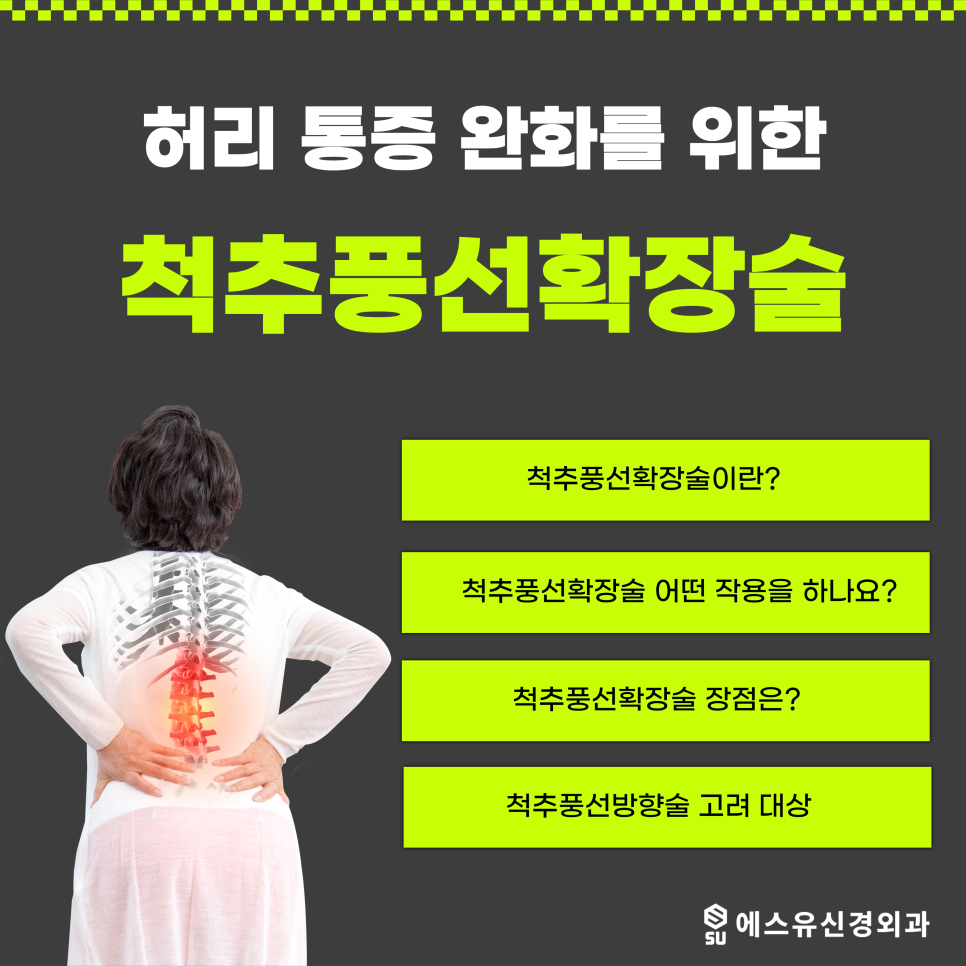모든 치료에는 개인차가 존재하며 정확한 진단 후 단계적으로 접근하는 것이 무엇보다 중요합니다. 지금까지 허리통증완화방법 중 하나인 척추풍선확장술에 대해 정리해 드렸습니다. 궁금한 점이 있다면 의료진과 충분히 상담해 보시길 권해드립니다. 마지막으로 수원에스유신경외과였습니다.