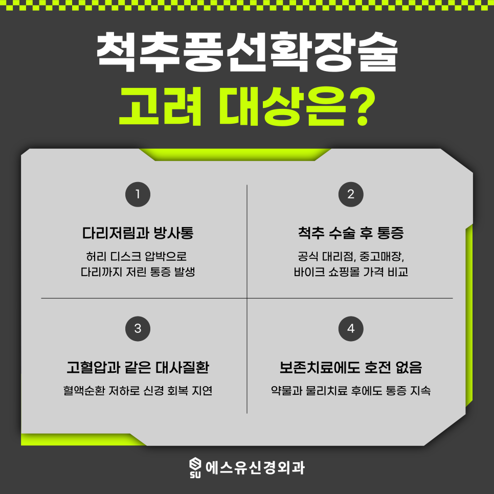 ✔ 척추관 협착으로 다리 저림이나 방사통이 있는 경우