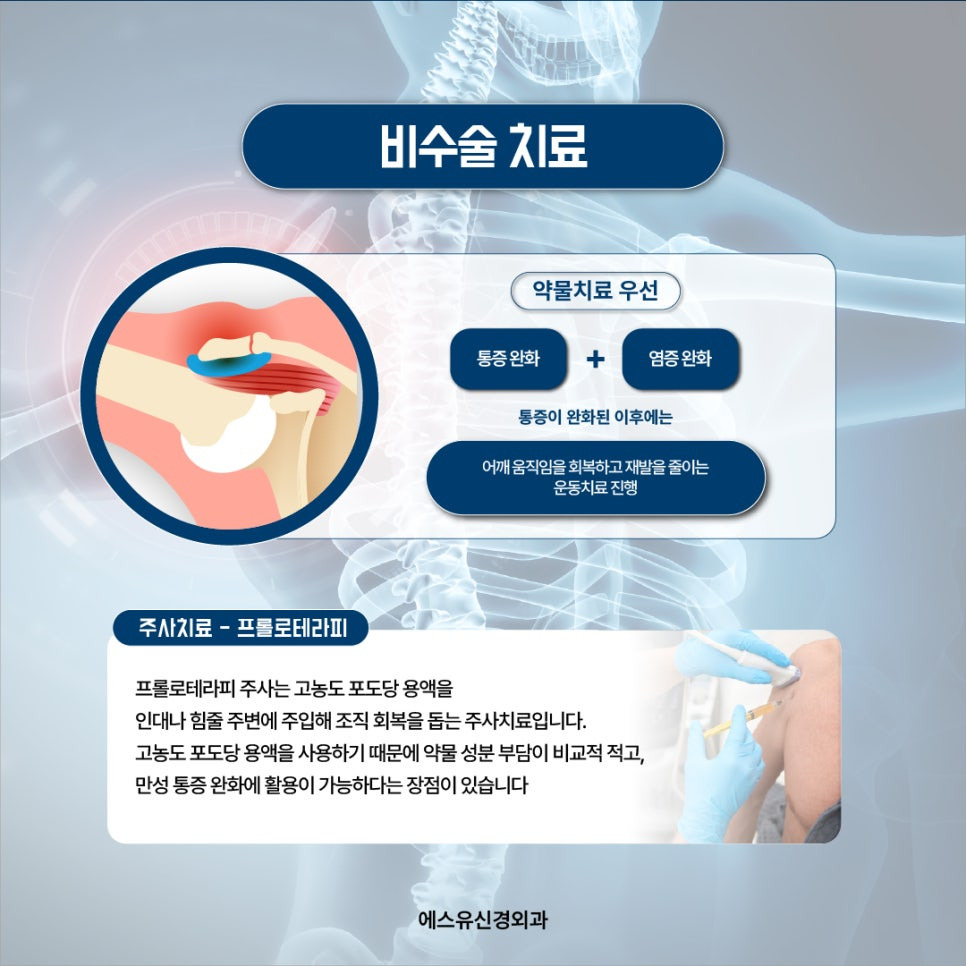 프롤로테라피주사치료를 포함한 단계적인 관리와 함께 일상 속 습관을 조금씩 바꿔주는 것만으로도 어깨는 다시 편안함을 되찾을 수 있습니다. 지금까지 양쪽어깨통증과 어깨충돌증후군 관리 방향에 대해 에스유신경외과에서 전해드렸습니다.