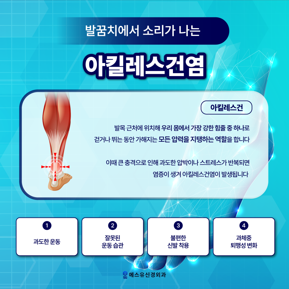 특히 평소 스트레칭이 부족한 상태에서 러닝이나 등산처럼 반복 충격이 있는 활동을 시작하면 아킬레스건에 부담이 집중되기 쉽습니다.