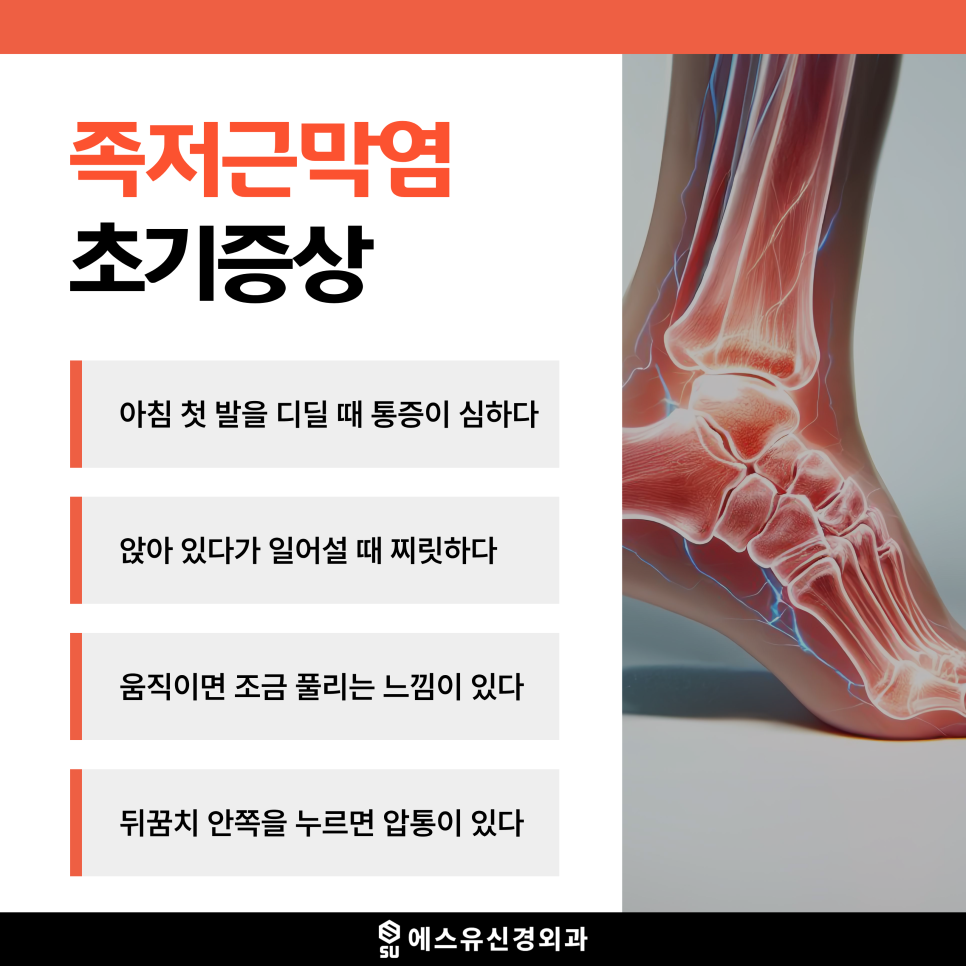 오늘은 수원족부정형외과 에스유신경외과에서 많이 상담하는 내용 중 하나인 족저근막염초기증상을 중심으로 어떤 신호를 체크해야 하는지 왜 초기에 관리가 중요한지 그리고 프롤로테라피 치료는 어떻게 접근하는지 차근차근 설명해보겠습니다.