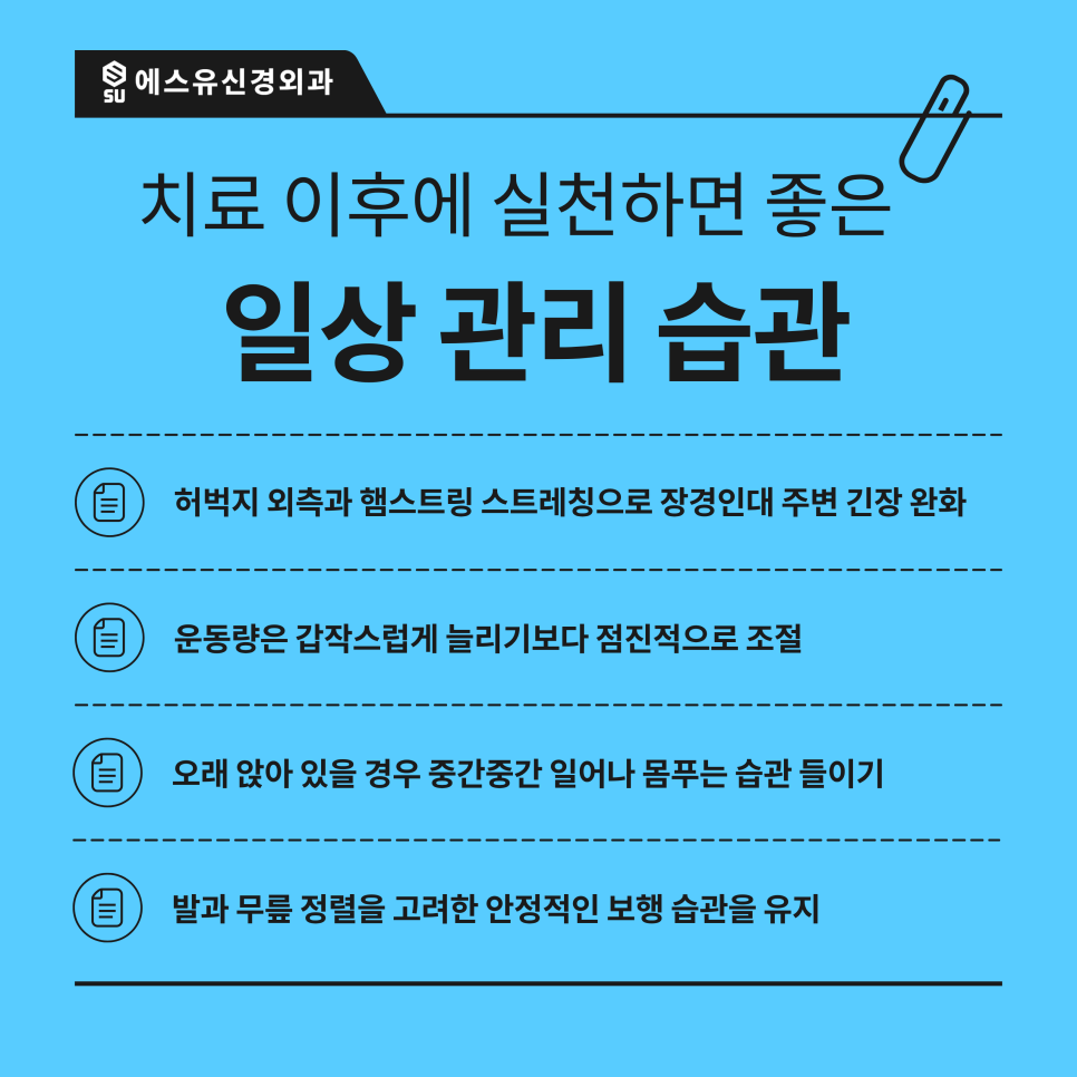 발과 무릎 정렬을 고려한 안정적인 보행 습관을 유지하는 것도 중요합니다. 이러한 관리 방법을 꾸준히 실천하면 무릎 주변 긴장을 줄이는 데 도움이 될 수 있습니다.