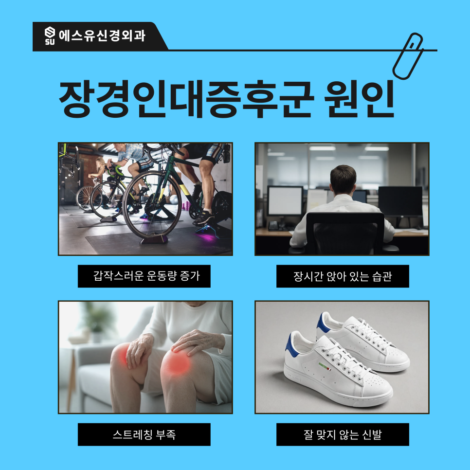 장경인대증후군은 갑자기 생기는 질환이라기보다는 반복적인 사용과 자세 습관이 쌓이면서 나타나는 경우가 많습니다. 대표적으로 다음과 같은 생활 패턴이 영향을 줄 수 있습니다.