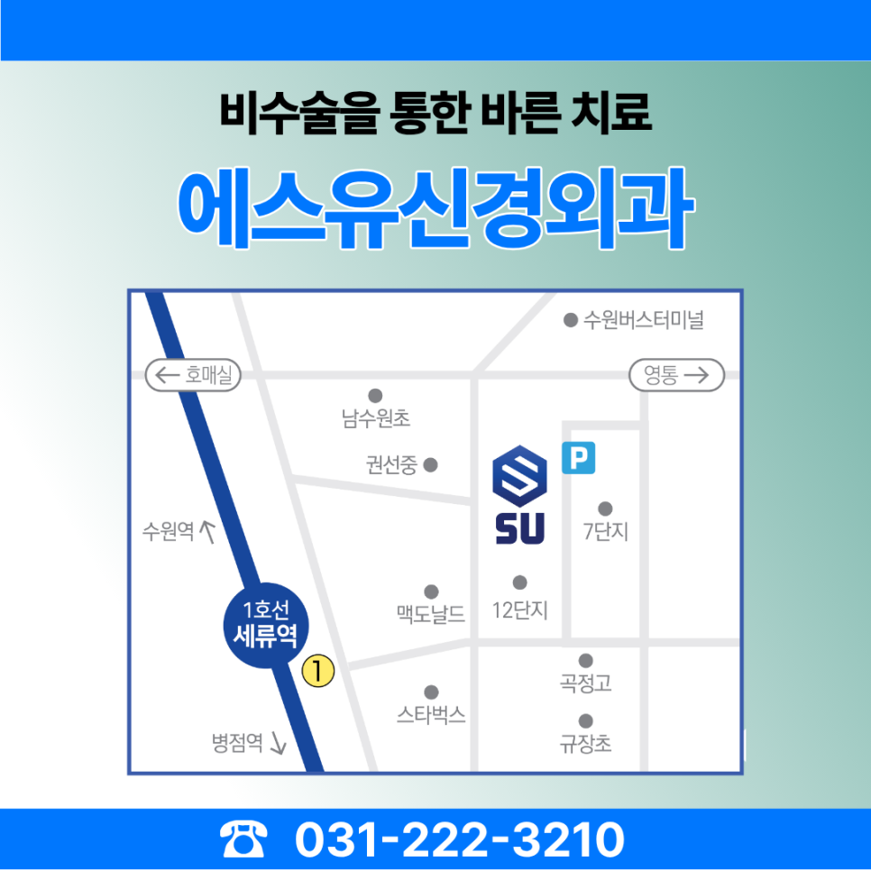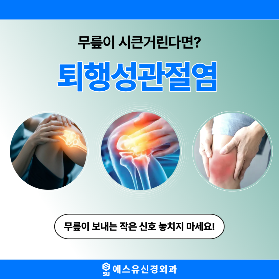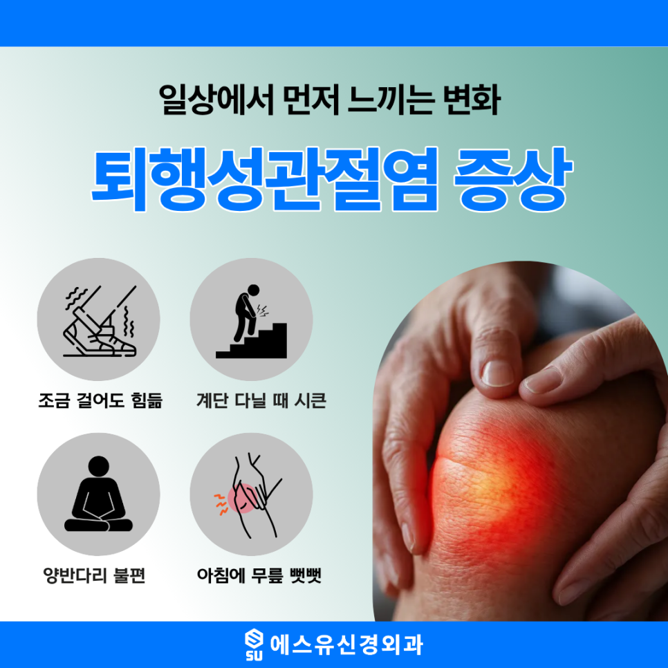 퇴행성관절염이 의심되는 경우라면 무릎 관절 상태를 살펴보고 개인에게 맞는 관리 방향을 찾는 것이 중요합니다. 수원퇴행성관절염을 치료하는 에스유신경외과에서는 무릎 통증으로 불편을 겪는 분들이 관절 상태를 확인하고 적절한 치료와 관리 방법을 고려할 수 있도록 도움을 드리고 있습니다. 무릎 통증이 계속된다면 방치하기보다 원인을 확인하고 관절 건강을 지키는 방향을 고민해보는 것이 좋겠습니다.