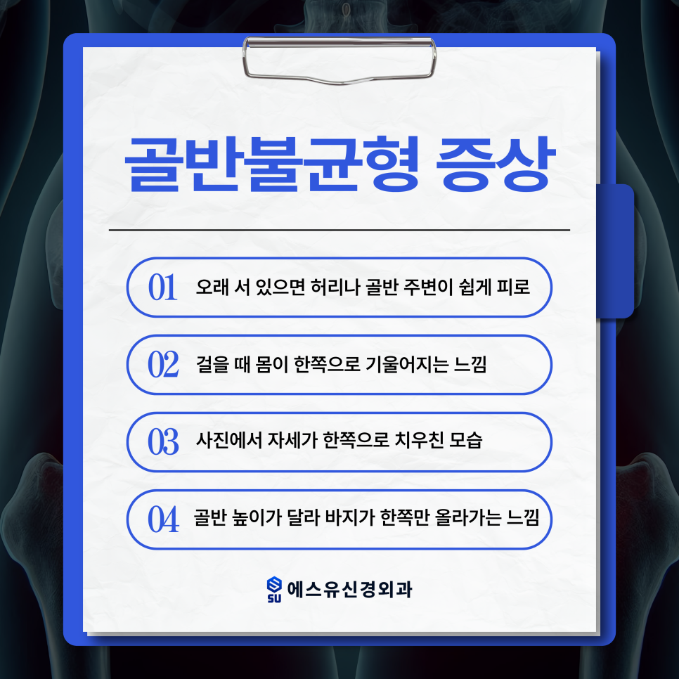 에스유신경외과에서는 체형과 자세 상태를 확인한 후 개인의 신체 조건에 맞는 관리 방법을 안내하고 있으며 도수치료 등을 통해 골반 균형 회복을 돕는 접근이 이루어질 수 있습니다. 몸비대칭이 지속적으로 느껴진다면 원인을 정확하게 확인하고 적절한 관리 방향을 찾는 것이 중요합니다.