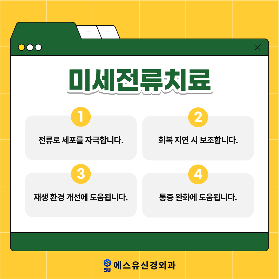 이런 변화는 단순한 피로가 아니라 조직 내부의 기능 이상에서 비롯되는 경우가 많습니다. 그래서 겉으로 드러난 불편감만 완화하는 방식이 아니라 보다 깊은 단계까지 접근하는 치료가 필요합니다. 에스유신경외과에서는 이러한 통증의 원인을 보다 세밀하게 파악하고 맞춤형으로 적용할 수 있는 특수통증물리치료를 통해 회복을 돕고 있습니다.