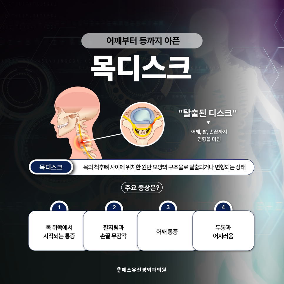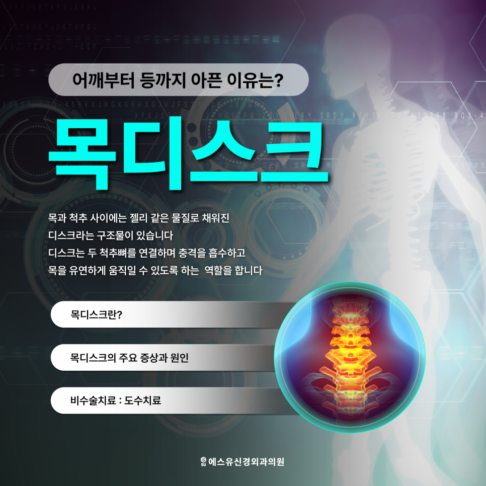 반대로 시간이 지나면서 증상이 심해지면 회복 과정이 더 길어질 수 있기 때문에 변화가 느껴질 때 빠르게 상태를 확인하는 것이 중요합니다. 인계동신경외과 에스유신경외과에서는 이러한 목뻐근함의 원인을 하나로 단정하기보다 개인의 자세 습관과 경추 상태를 함께 고려해 접근하고 있습니다. 움직일수록 불편해지는 신호를 가볍게 넘기기보다는 몸이 보내는 변화로 받아들이고 적절한 관리 방향을 찾는 것이 필요합니다.