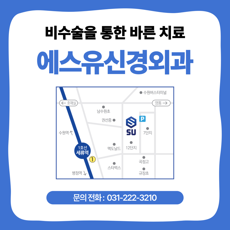 통증이 반복되거나 기존과 다른 형태로 나타난다면 스스로 판단하기보다는 검사를 통해 원인을 확인하는 과정이 필요합니다. 에스유신경외과에서도 이러한 점을 고려해 개인별 상태에 맞는 치료 방향을 안내하고 있으니 필요한 경우 부담 없이 확인해보시기 바랍니다.