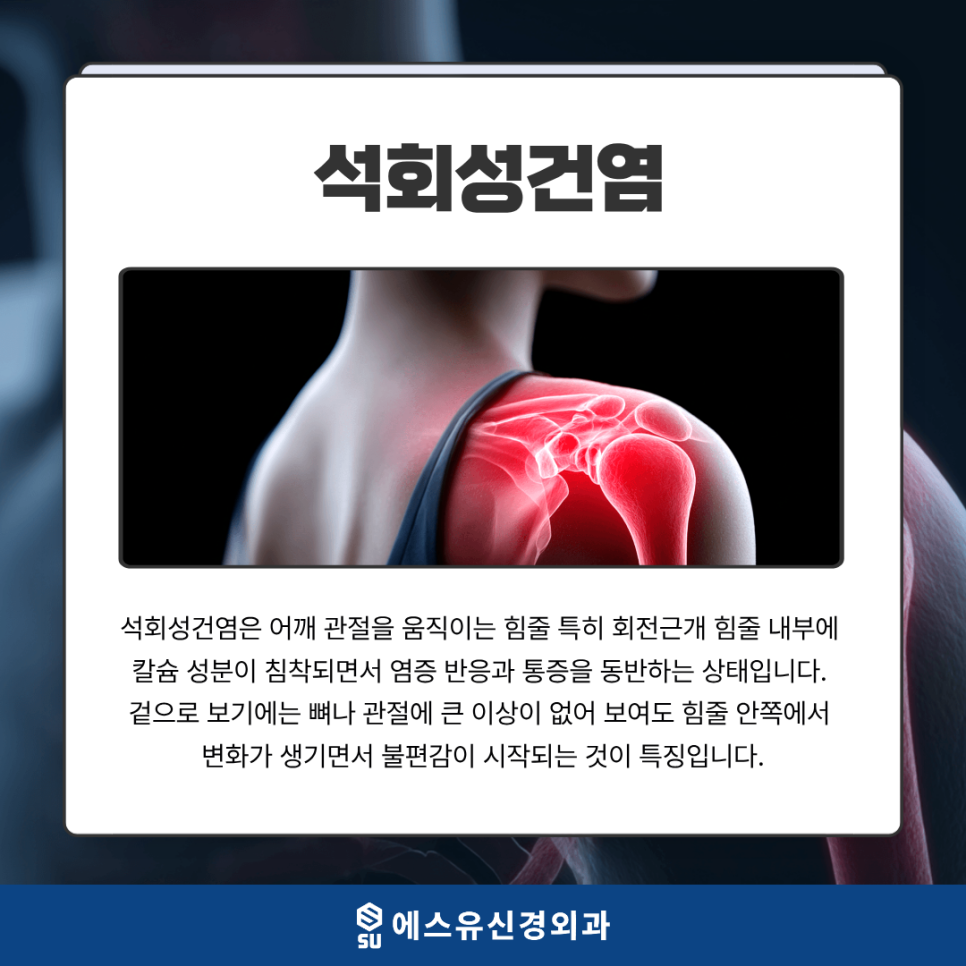 어깨 통증은 조금 쉬면 괜찮아지겠지하고 넘기기 쉬운 증상입니다. 하지만 반복되는 통증은 몸이 보내는 분명한 신호일 수 있습니다. 특히 석회성건염처럼 통증의 강도가 오르내리며 기억에 남는 질환은 적절한 시점에 상태를 파악하고 관리 방향을 잡는 것이 중요합니다.